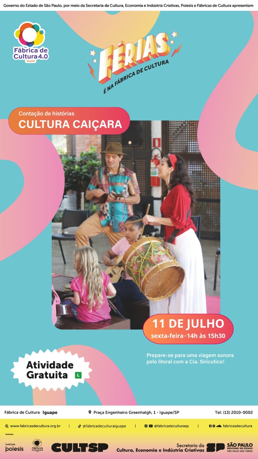 Contação de histórias e vivência da Cultura Caiçara em Iguape, com entrada gratuita.